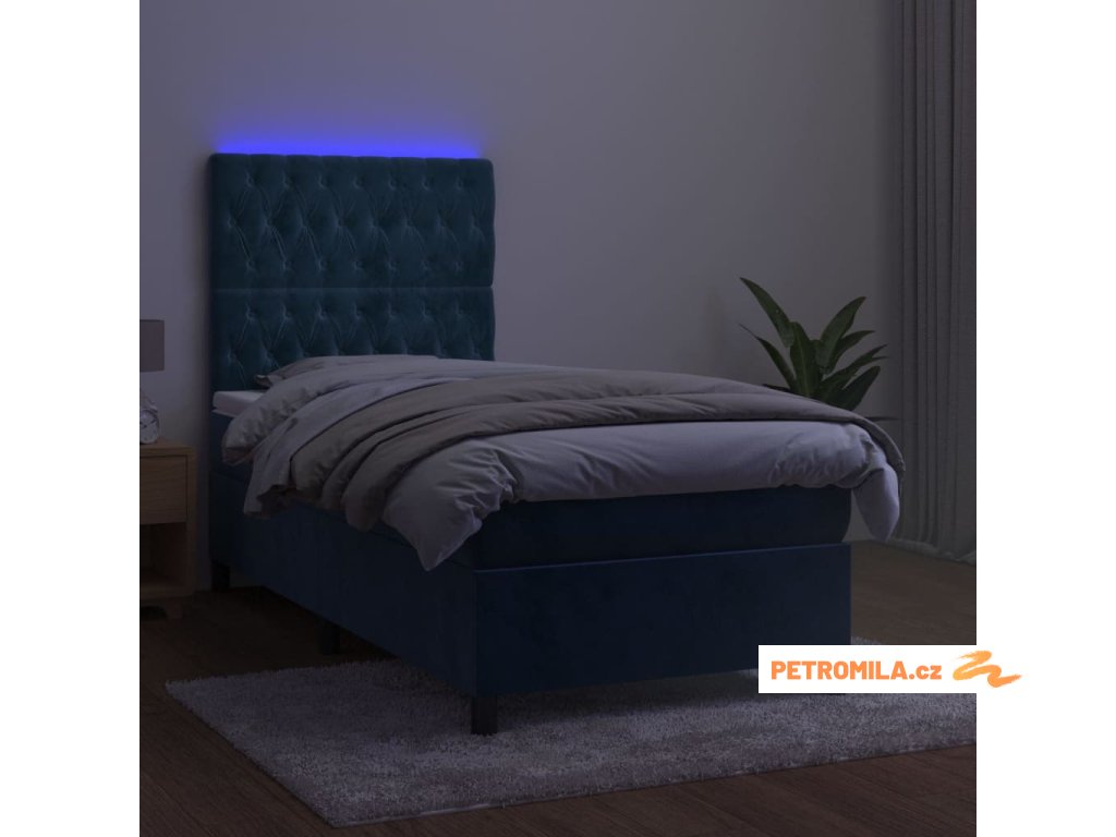 Box spring postel s matrací a LED tmavě modrá 100x200 cm samet