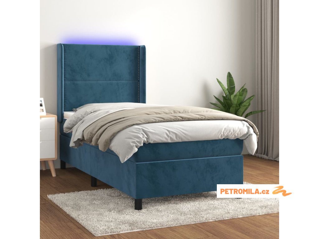 Box spring postel s matrací a LED tmavě modrá 100x200 cm samet