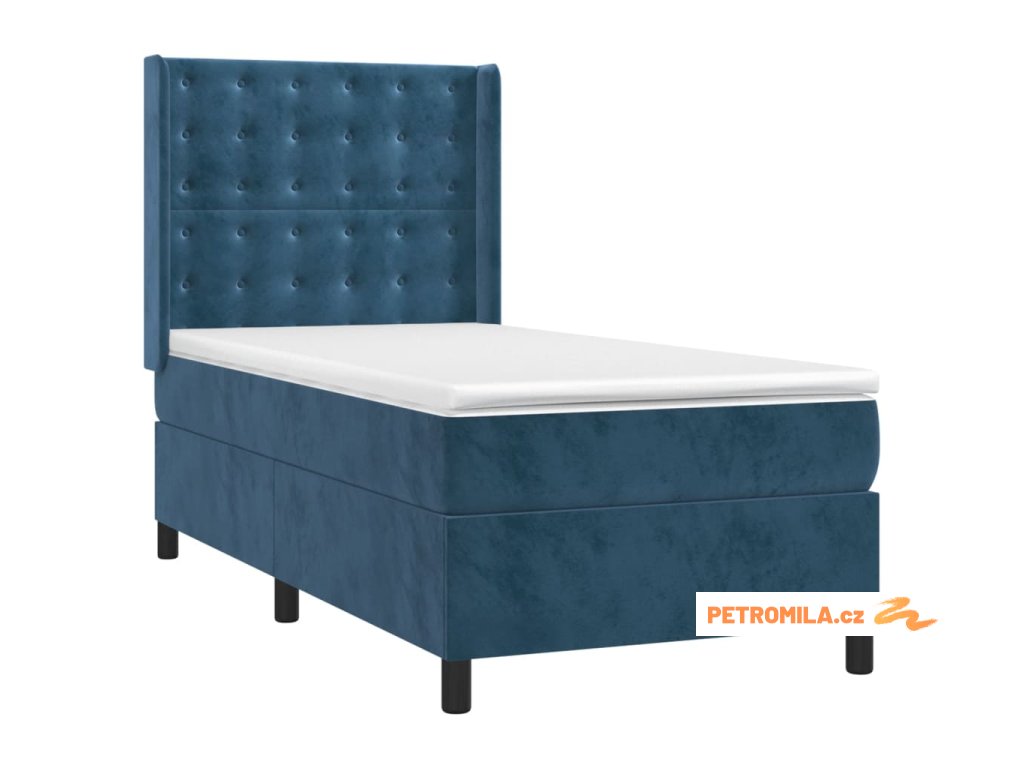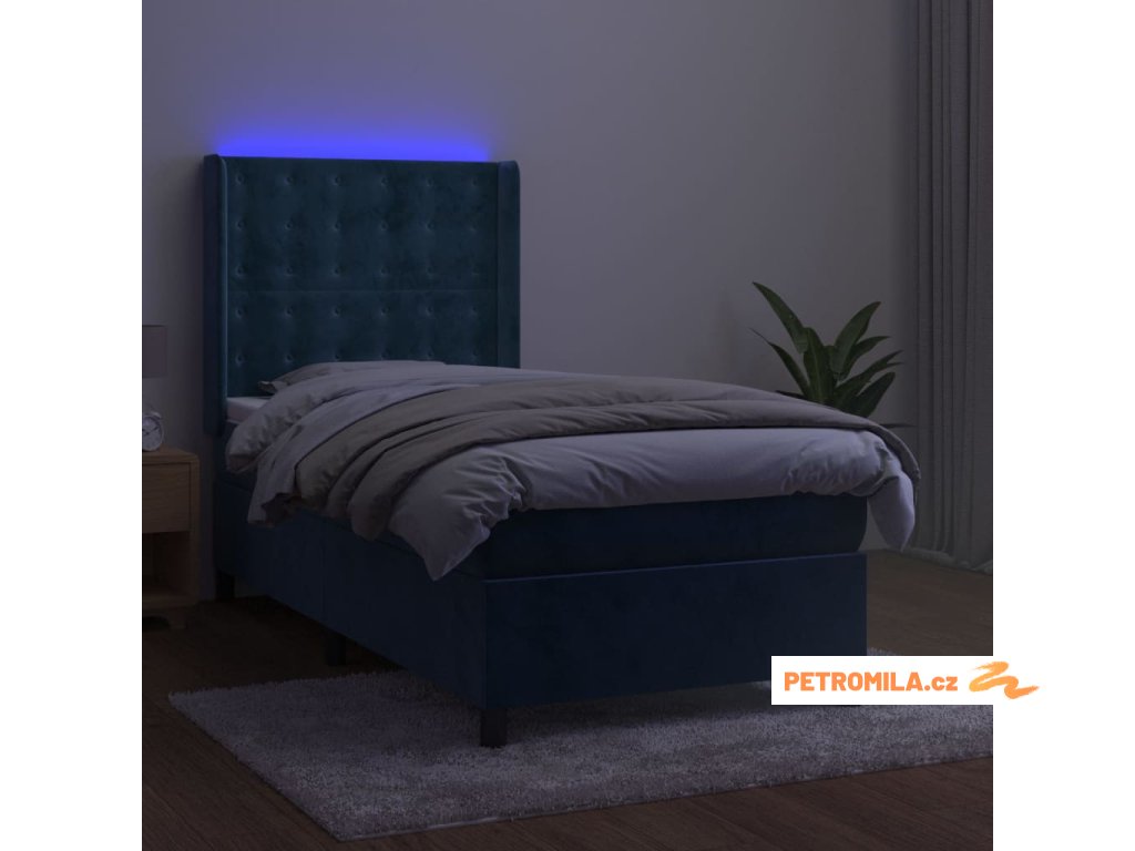 Box spring postel s matrací a LED tmavě modrá 100x200 cm samet