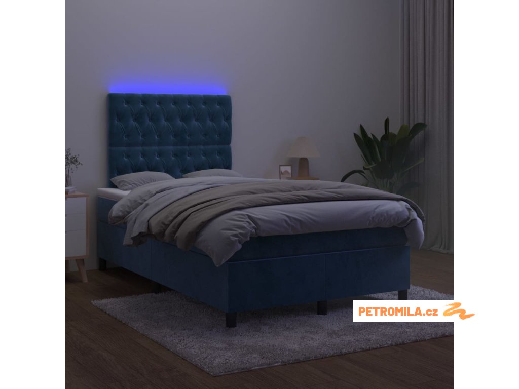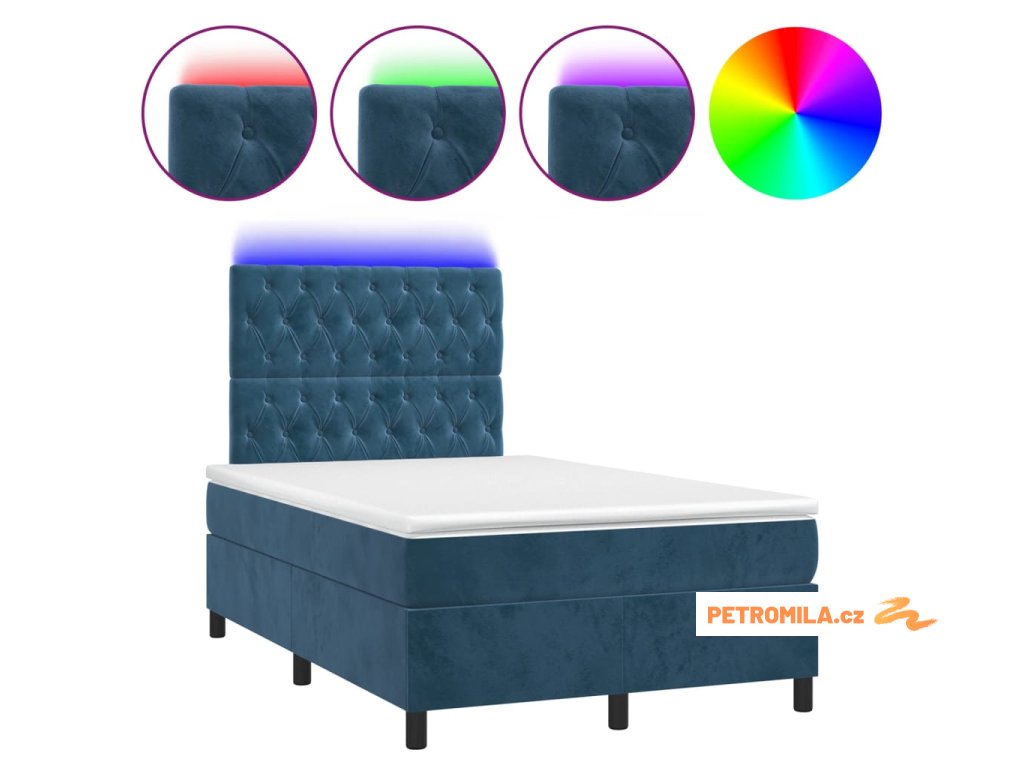 Box spring postel s matrací a LED tmavě modrá 120x200 cm samet