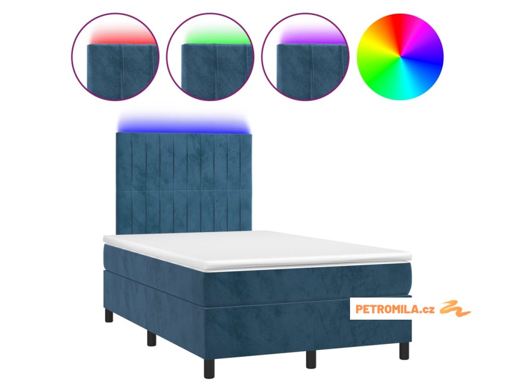Box spring postel s matrací a LED tmavě modrá 120x200 cm samet