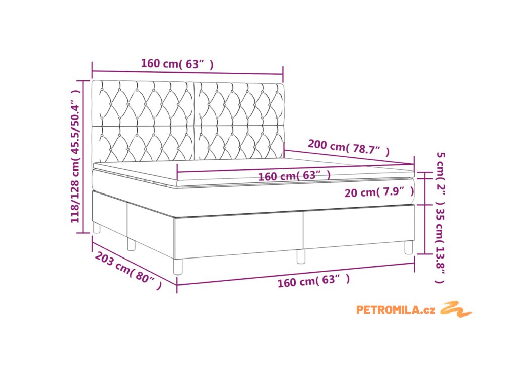- Celkové rozměry: 160 x 200 x 20 cm (Š x D x V)