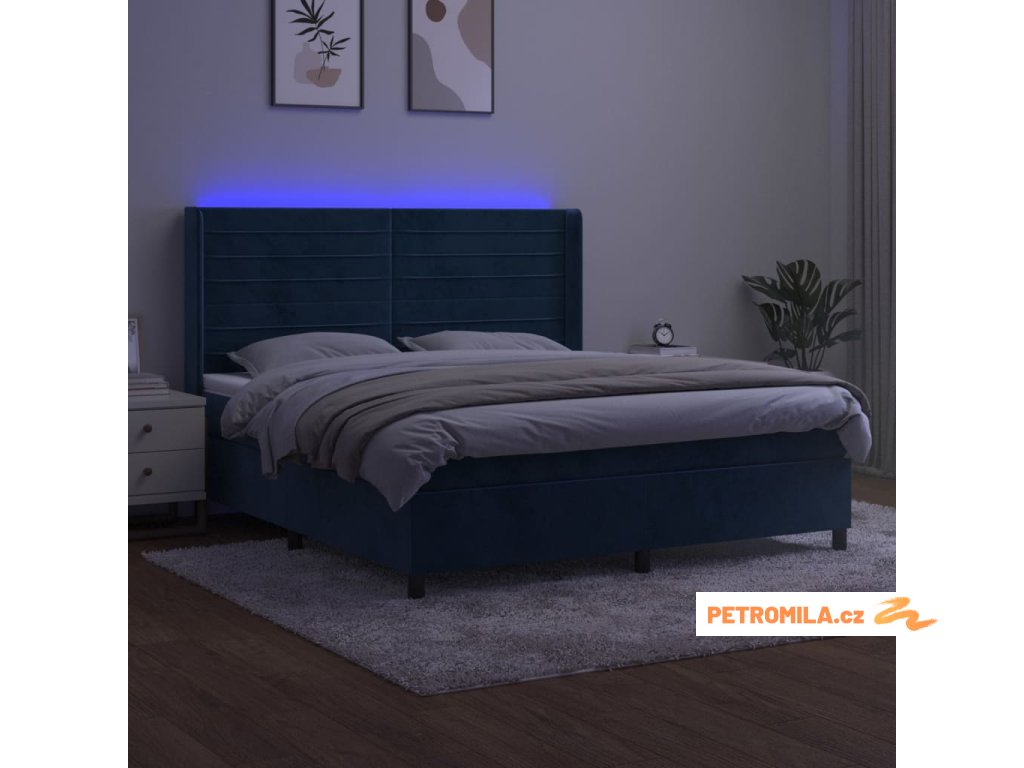 Box spring postel s matrací a LED tmavě modrá 160x200 cm samet