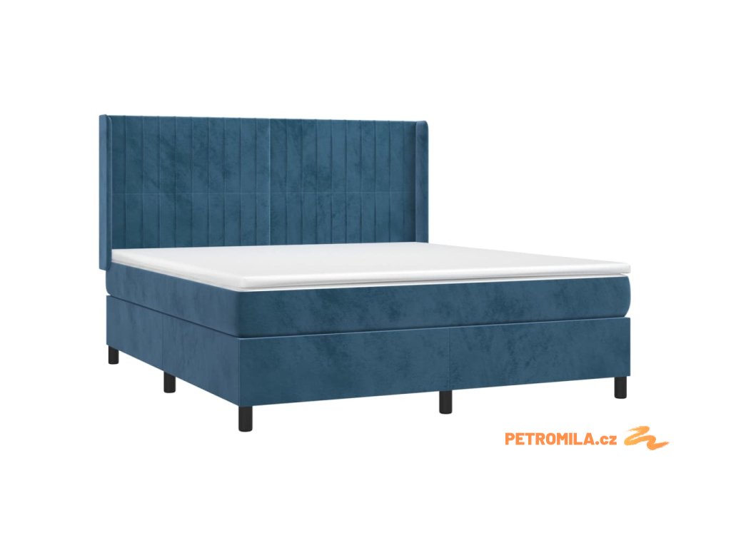 Box spring postel s matrací a LED tmavě modrá 160x200 cm samet