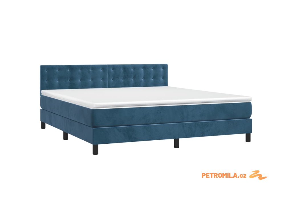 Box spring postel s matrací a LED tmavě modrá 160x200 cm samet