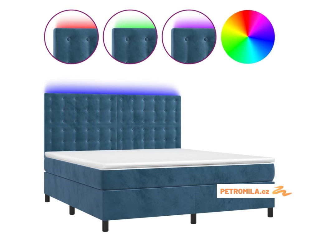 Box spring postel s matrací a LED tmavě modrá 180x200 cm samet