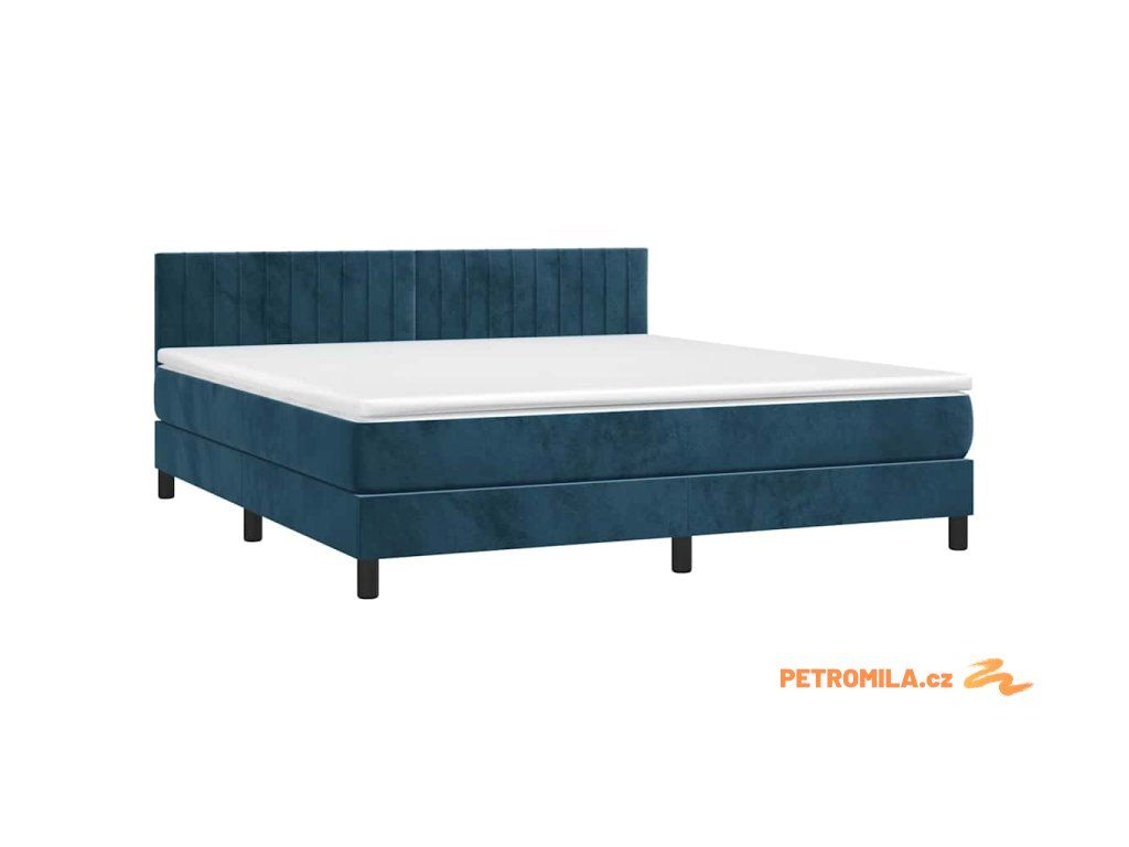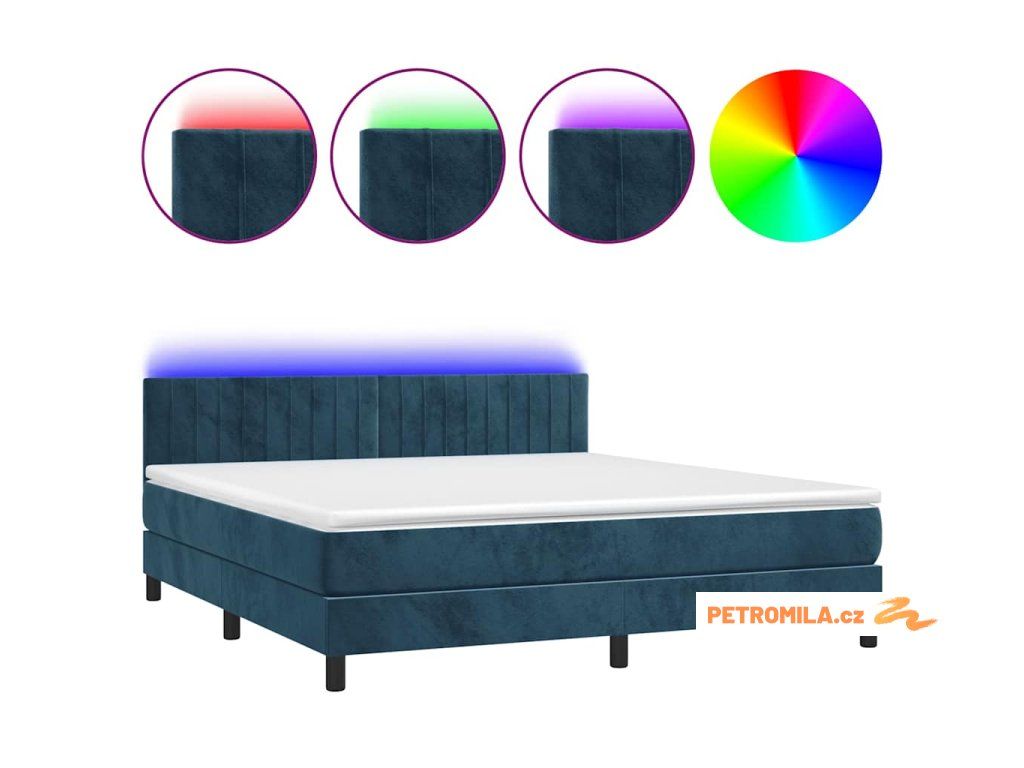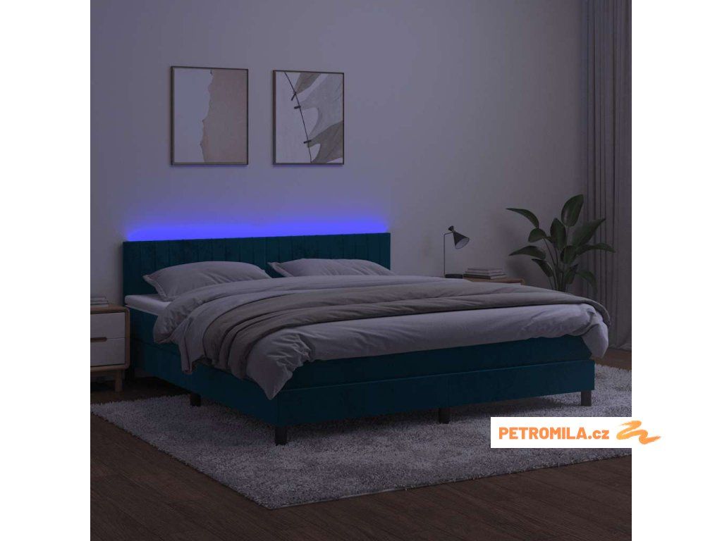 Box spring postel s matrací a LED tmavě modrá 180x200 cm samet