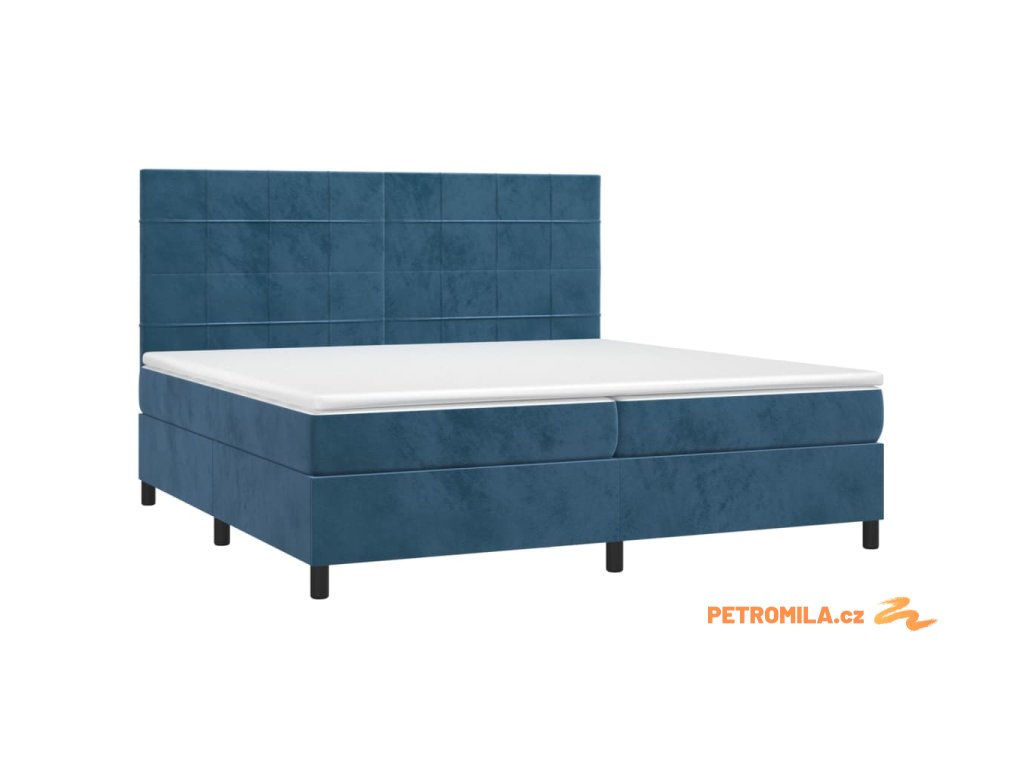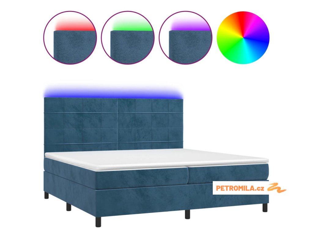 Box spring postel s matrací a LED tmavě modrá 200x200 cm samet