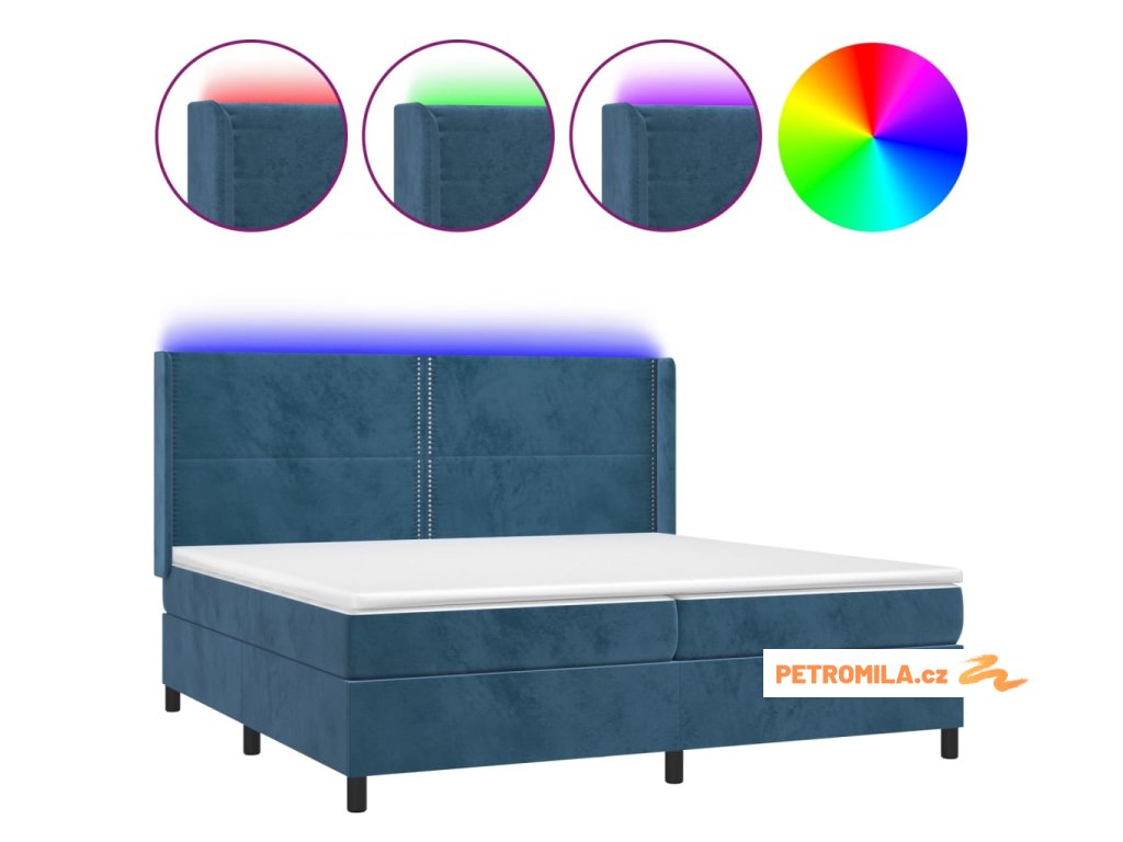 Box spring postel s matrací a LED tmavě modrá 200x200 cm samet