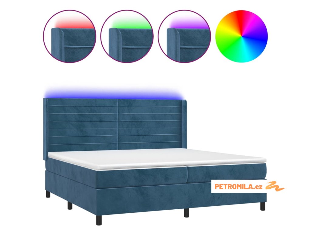 Box spring postel s matrací a LED tmavě modrá 200x200 cm samet