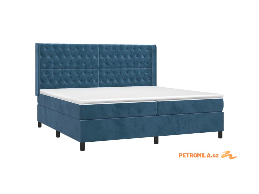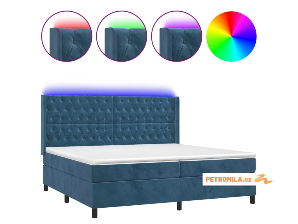 Box spring postel s matrací a LED tmavě modrá 200x200 cm samet