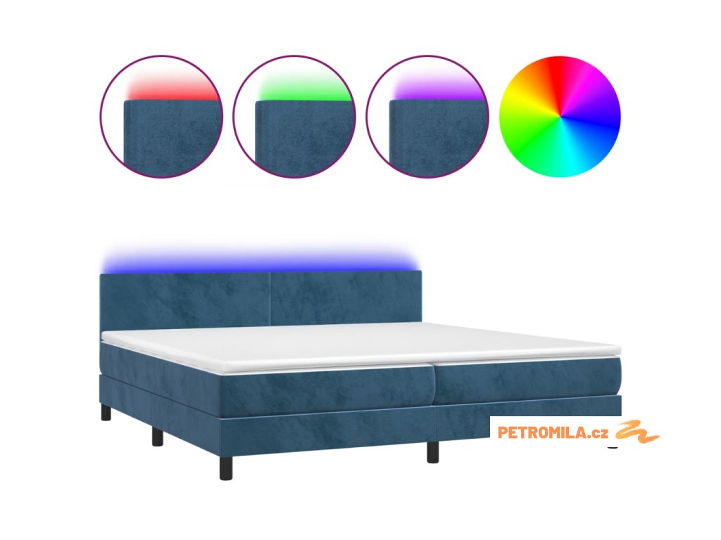 Box spring postel s matrací a LED tmavě modrá 200x200 cm samet