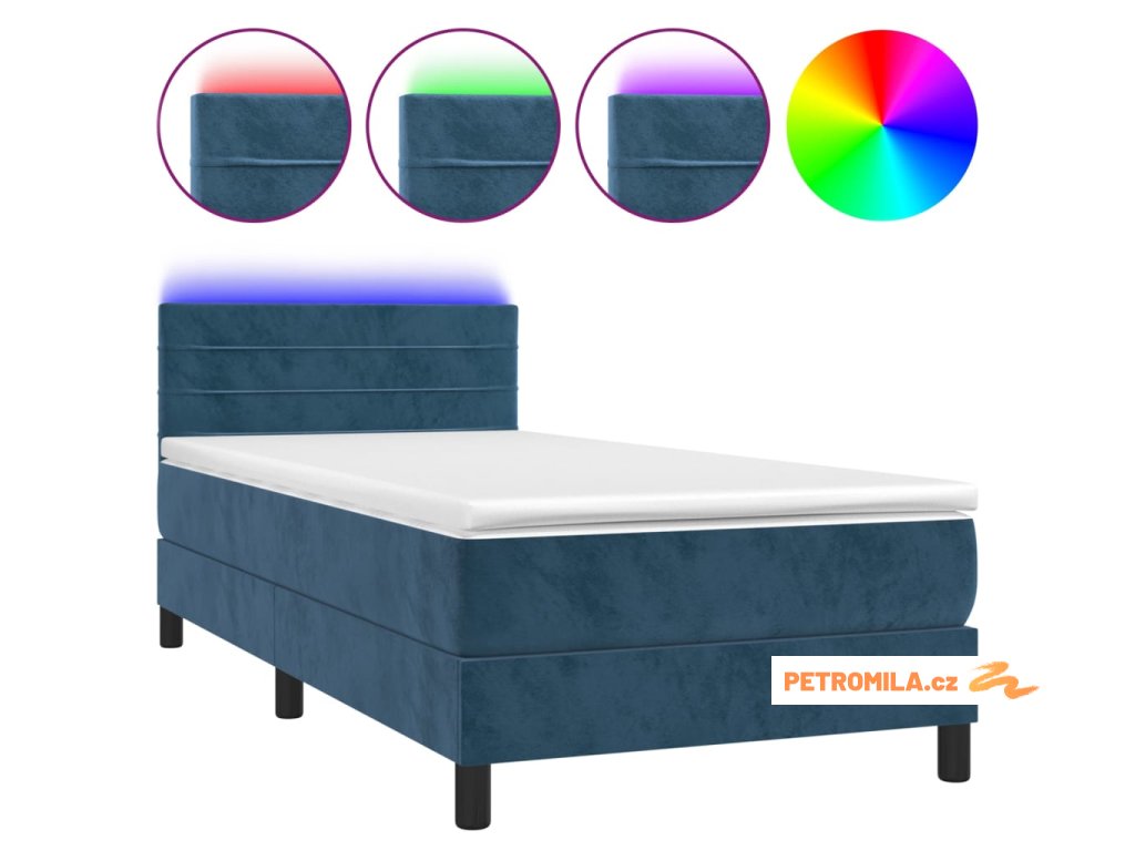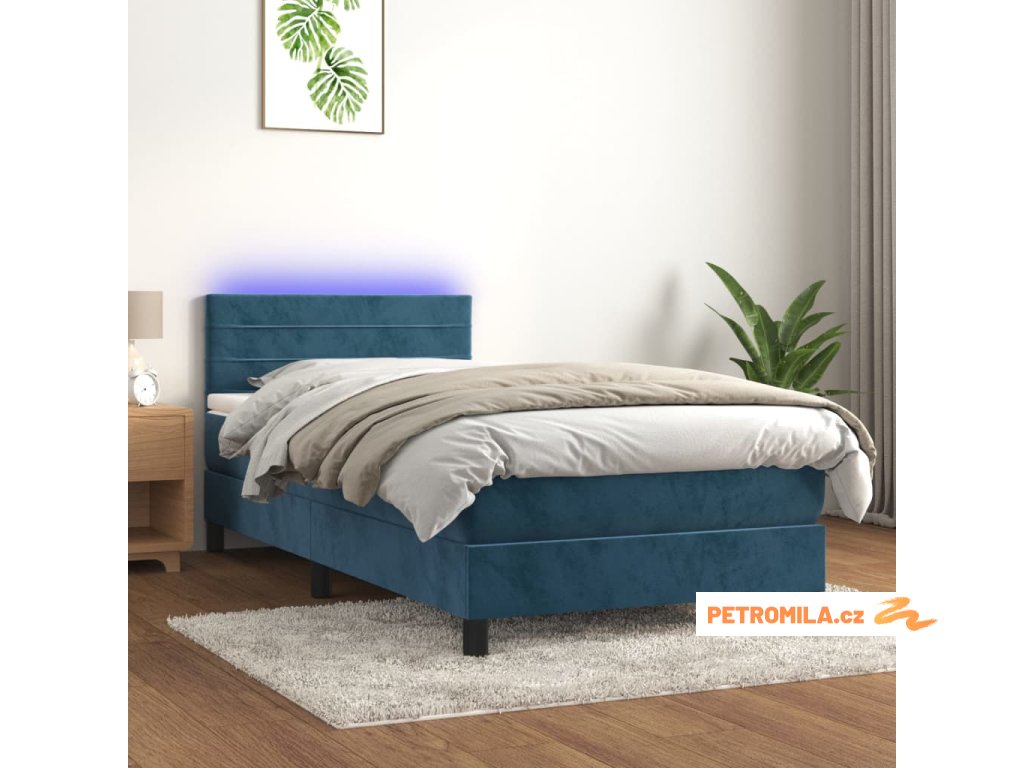 Box spring postel s matrací a LED tmavě modrá 80 x 200 cm samet