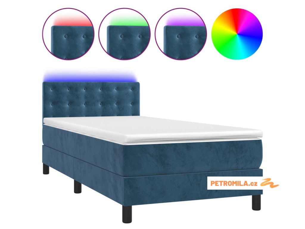 Box spring postel s matrací a LED tmavě modrá 90x200 cm samet