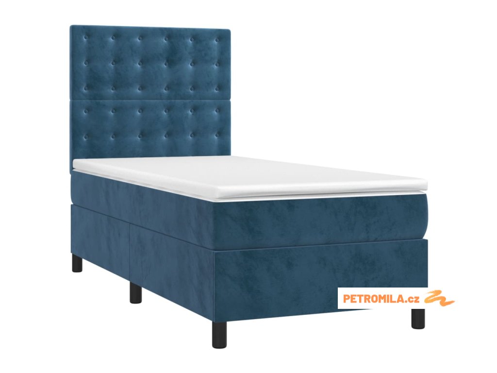 Box spring postel s matrací a LED tmavě modrá 90x200 cm samet