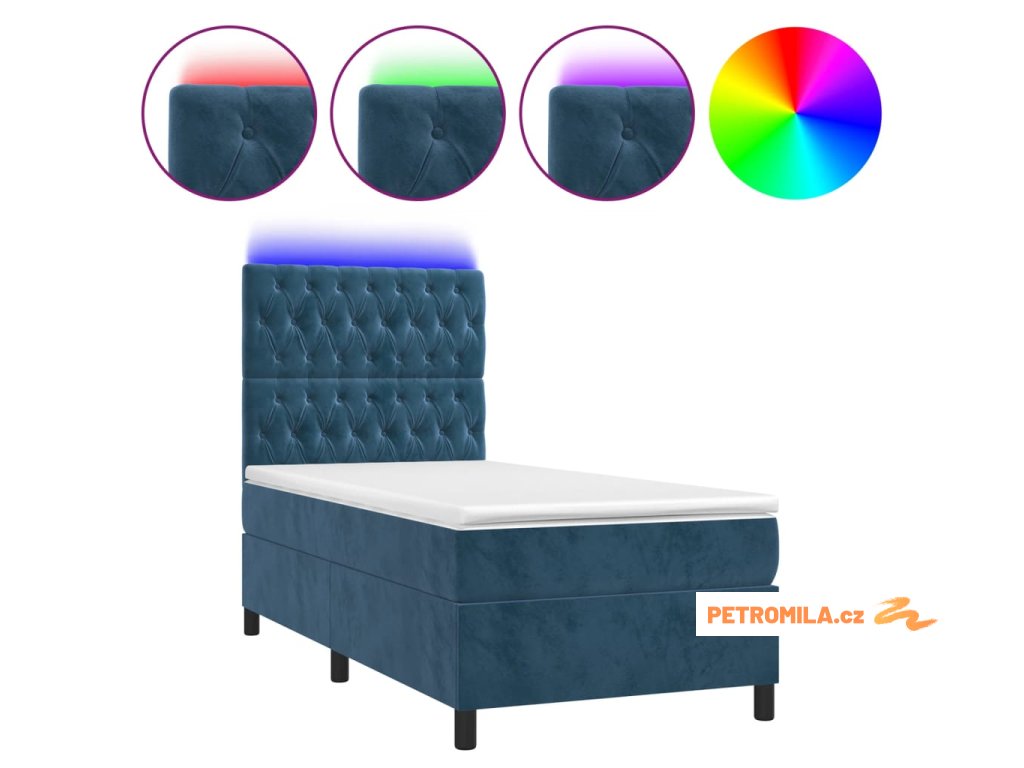 Box spring postel s matrací a LED tmavě modrá 90x200 cm samet