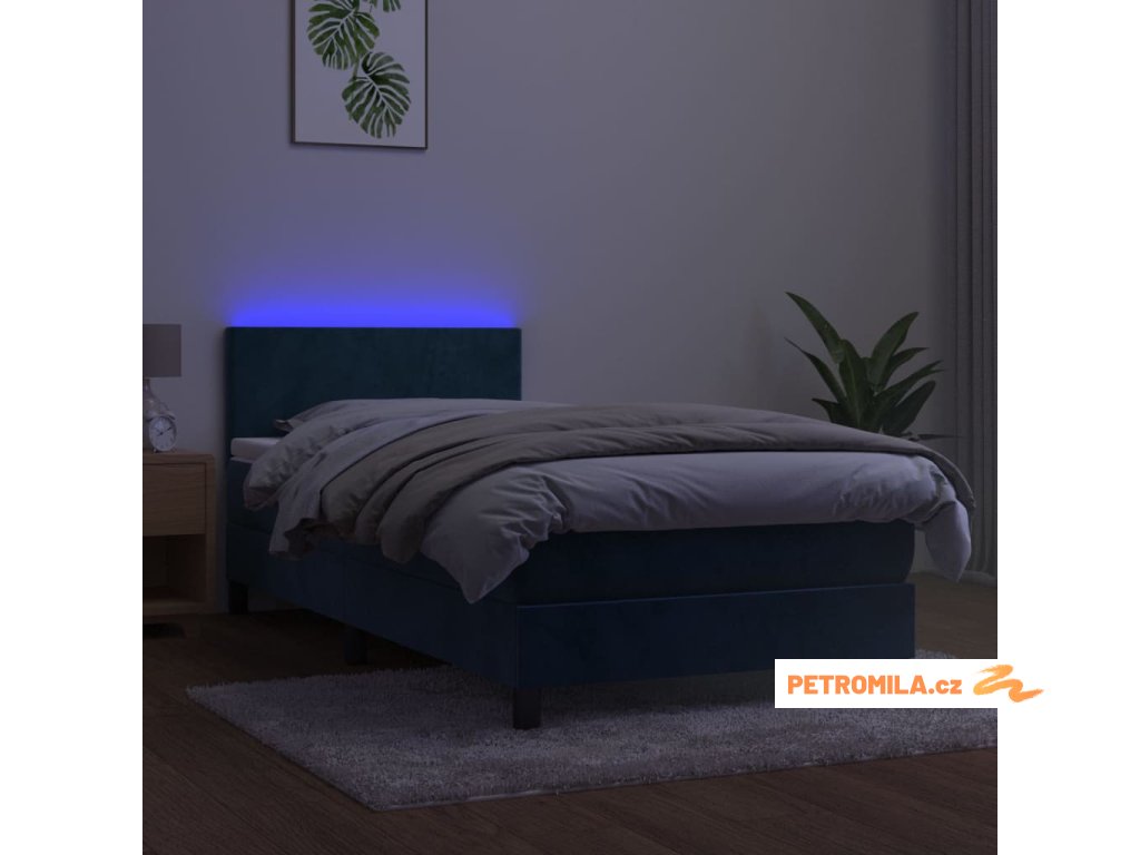 Box spring postel s matrací a LED tmavě modrá 90x200 cm samet