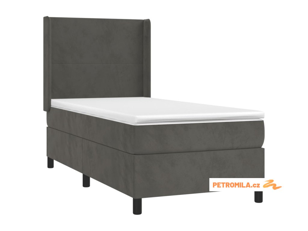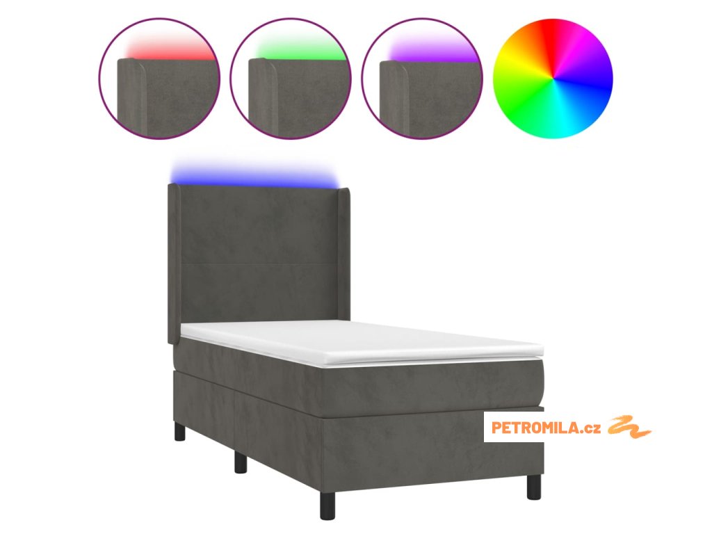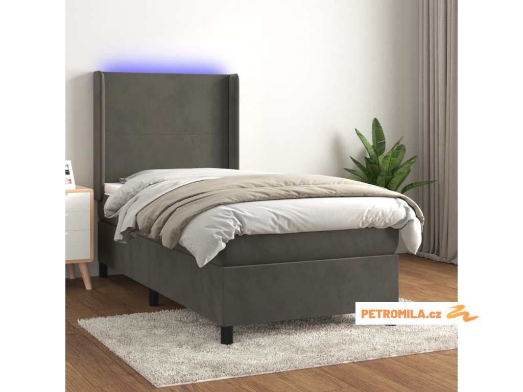 Box spring postel s matrací a LED tmavě šedá 100x200 cm samet