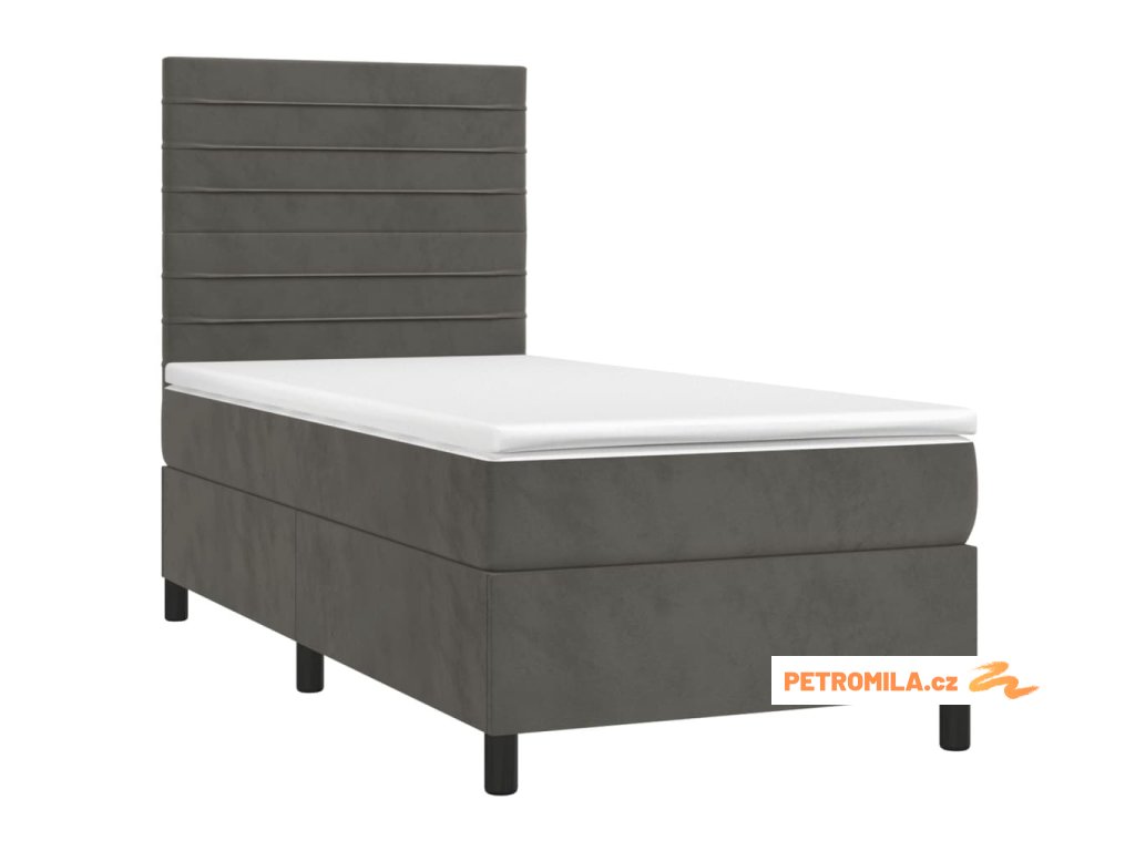 Box spring postel s matrací a LED tmavě šedá 100x200 cm samet