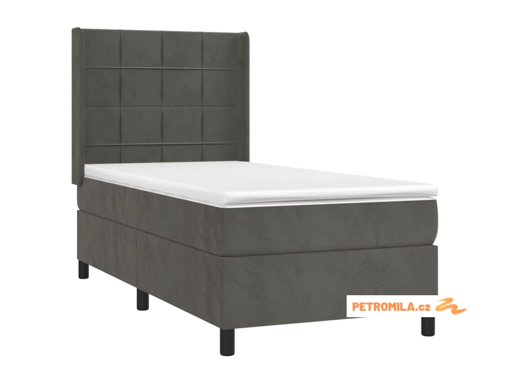 Box spring postel s matrací a LED tmavě šedá 100x200 cm samet