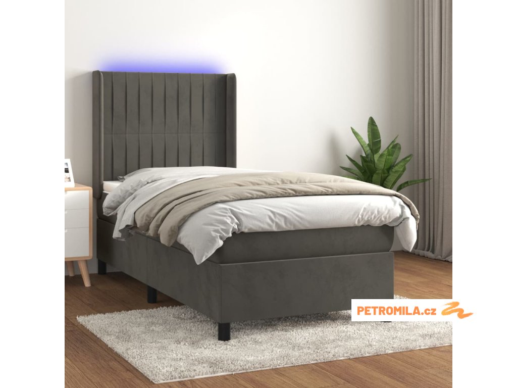 Box spring postel s matrací a LED tmavě šedá 100x200 cm samet