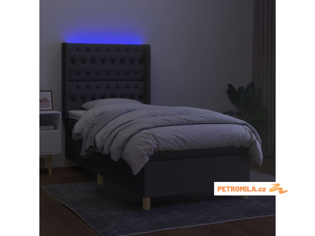 Box spring postel s matrací a LED tmavě šedá 100x200 cm textil
