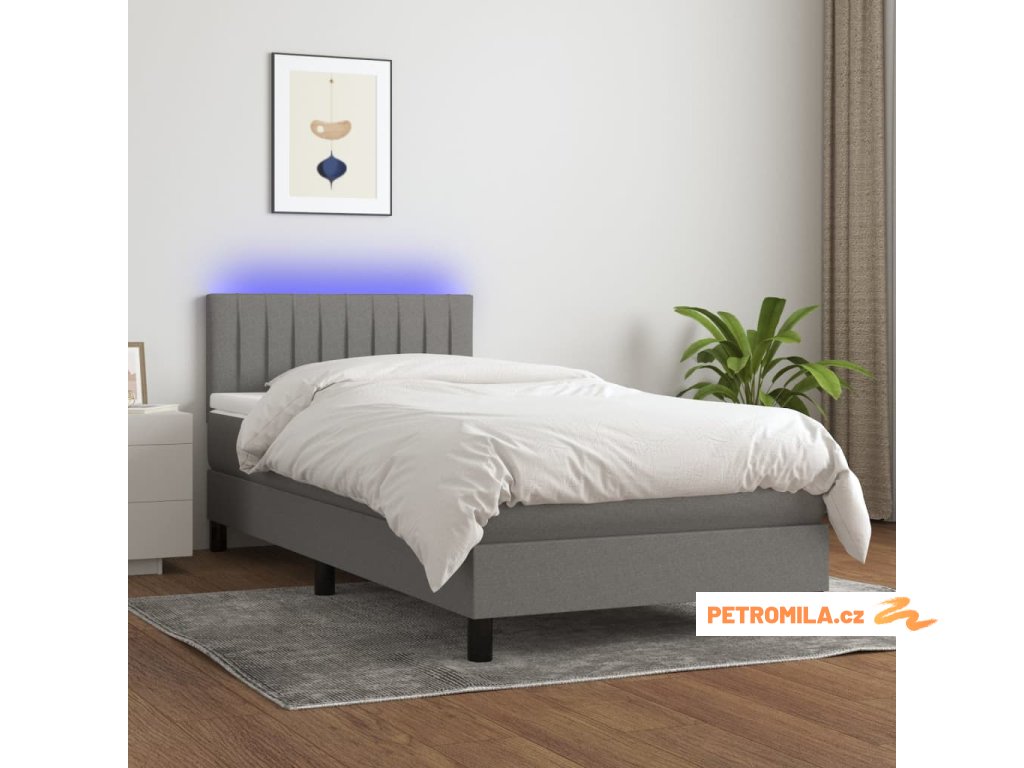 Box spring postel s matrací a LED tmavě šedá 100x200 cm textil