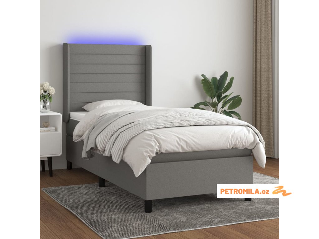 Box spring postel s matrací a LED tmavě šedá 100x200 cm textil