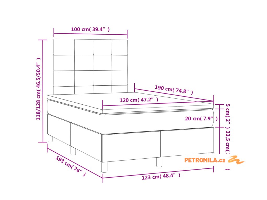 - Rozměry: 120 x 190 x 20 cm (Š x D x V)