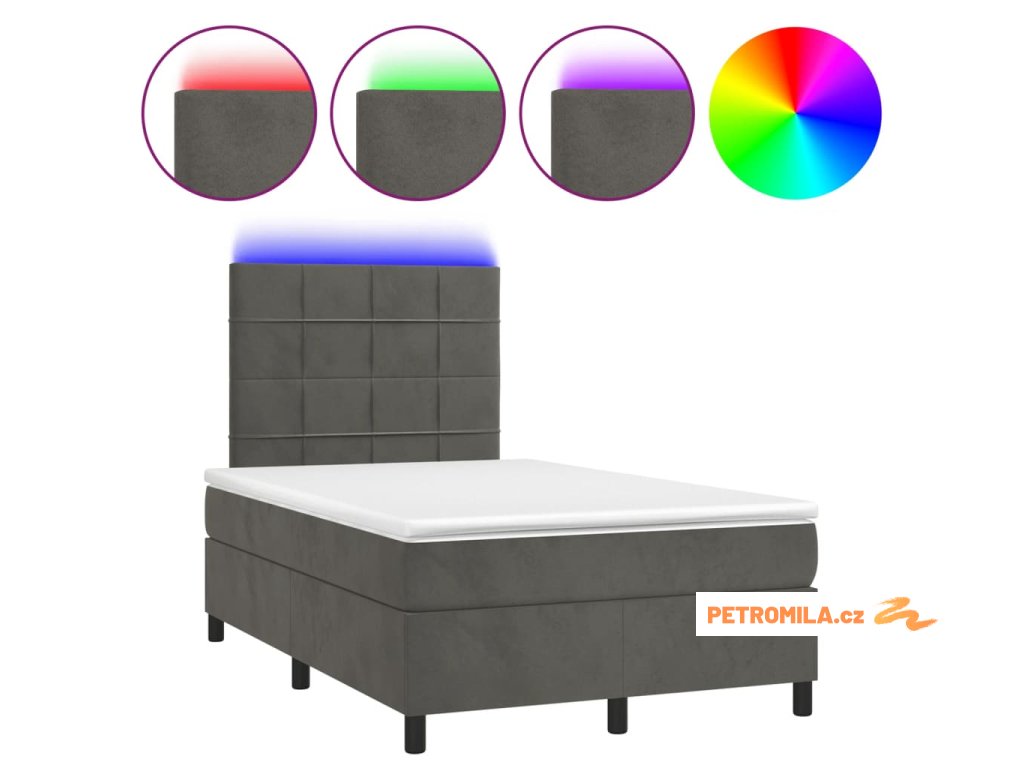 Box spring postel s matrací a LED tmavě šedá 120 x 190 cm samet