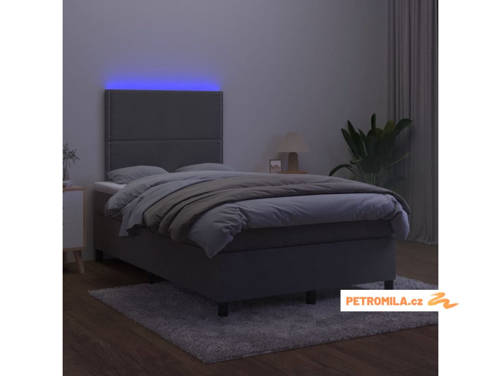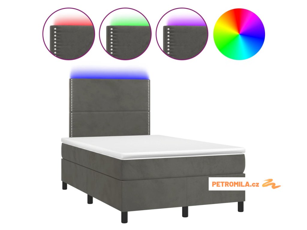 Box spring postel s matrací a LED tmavě šedá 120 x 190 cm samet