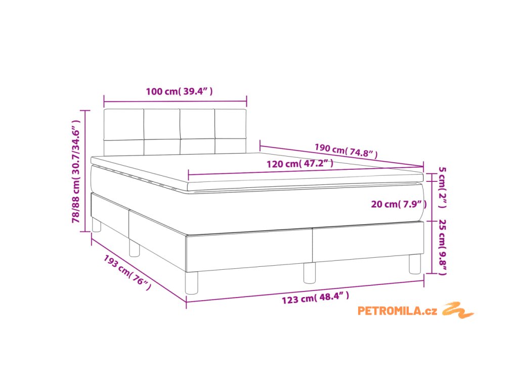 - Rozměry: 120 x 190 x 20 cm (Š x D x V)