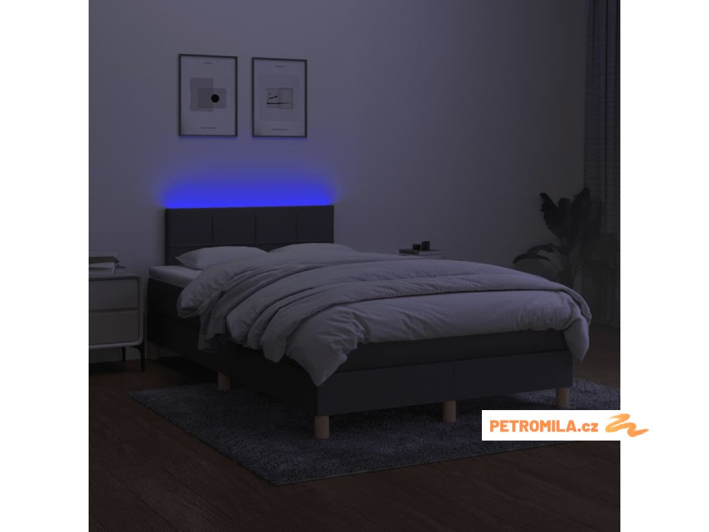 Box spring postel s matrací a LED tmavě šedá 120x190 cm textil