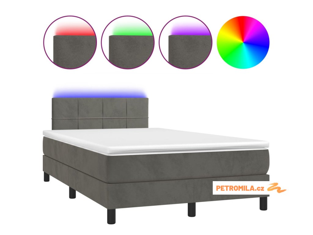 Box spring postel s matrací a LED tmavě šedá 120x200 cm samet