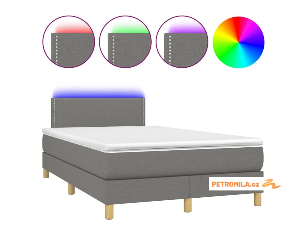 Box spring postel s matrací a LED tmavě šedá 120x200 cm textil