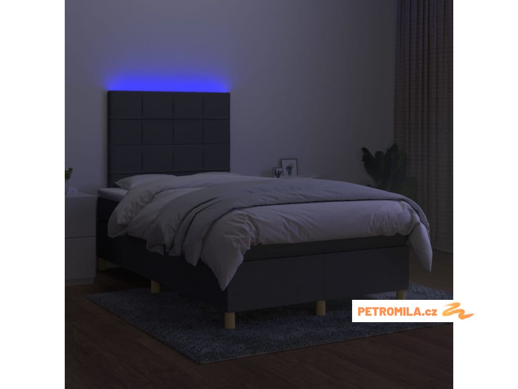 Box spring postel s matrací a LED tmavě šedá 120x200 cm textil