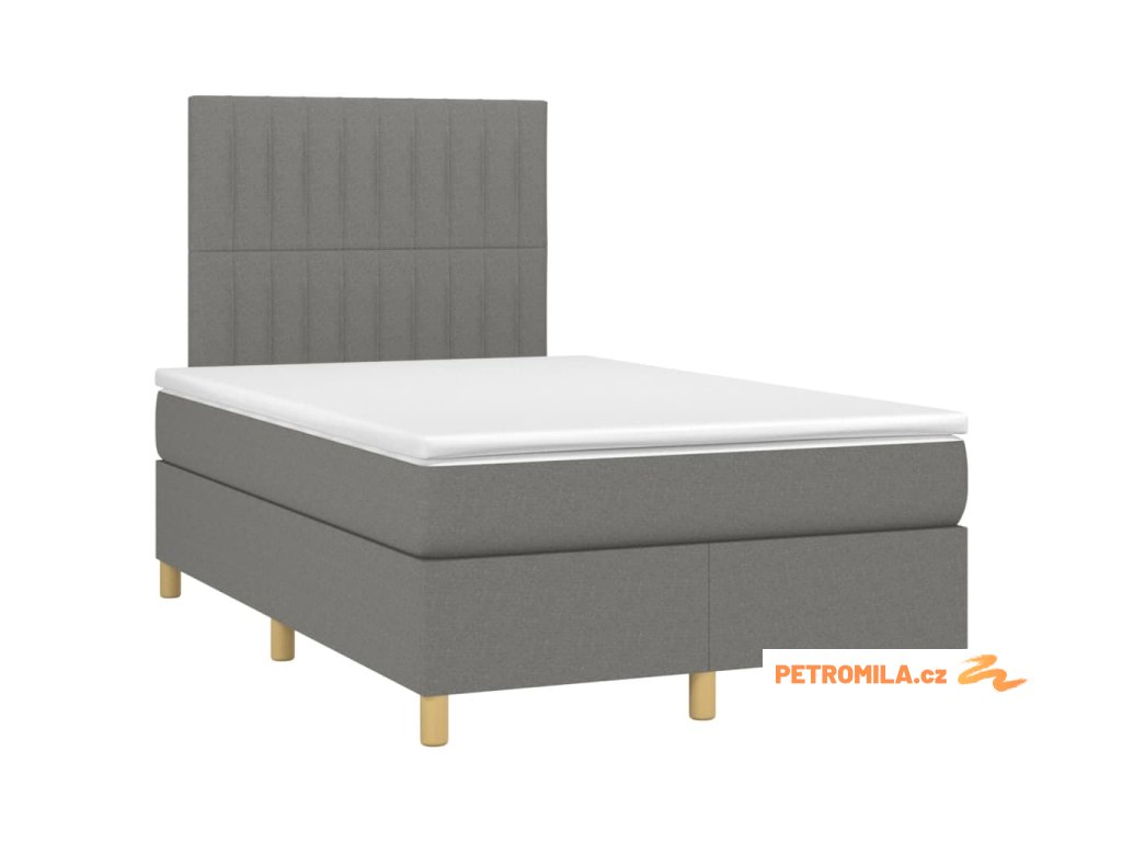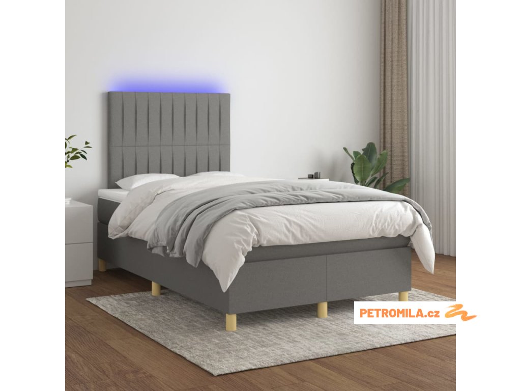 Box spring postel s matrací a LED tmavě šedá 120x200 cm textil