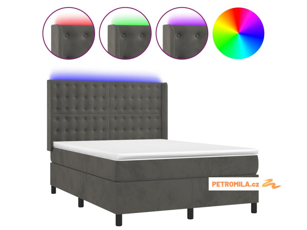 Box spring postel s matrací a LED tmavě šedá 140x190 cm samet