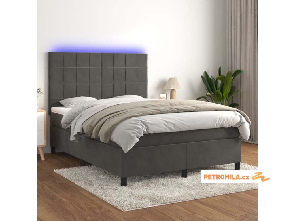 Box spring postel s matrací a LED tmavě šedá 140x190 cm samet