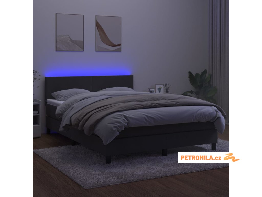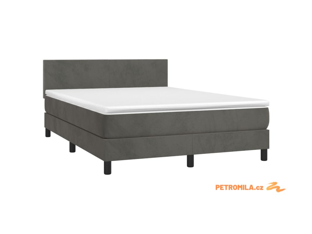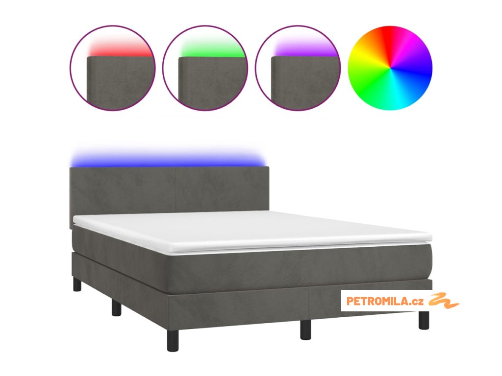 Box spring postel s matrací a LED tmavě šedá 140x190 cm samet