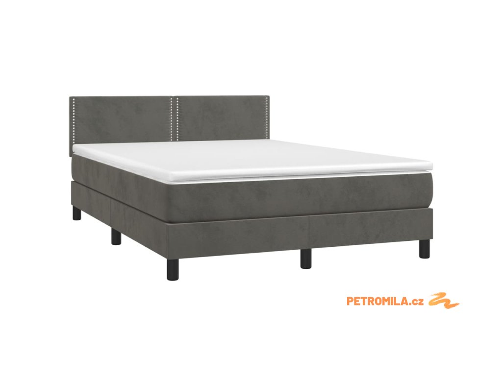 Box spring postel s matrací a LED tmavě šedá 140x190 cm samet