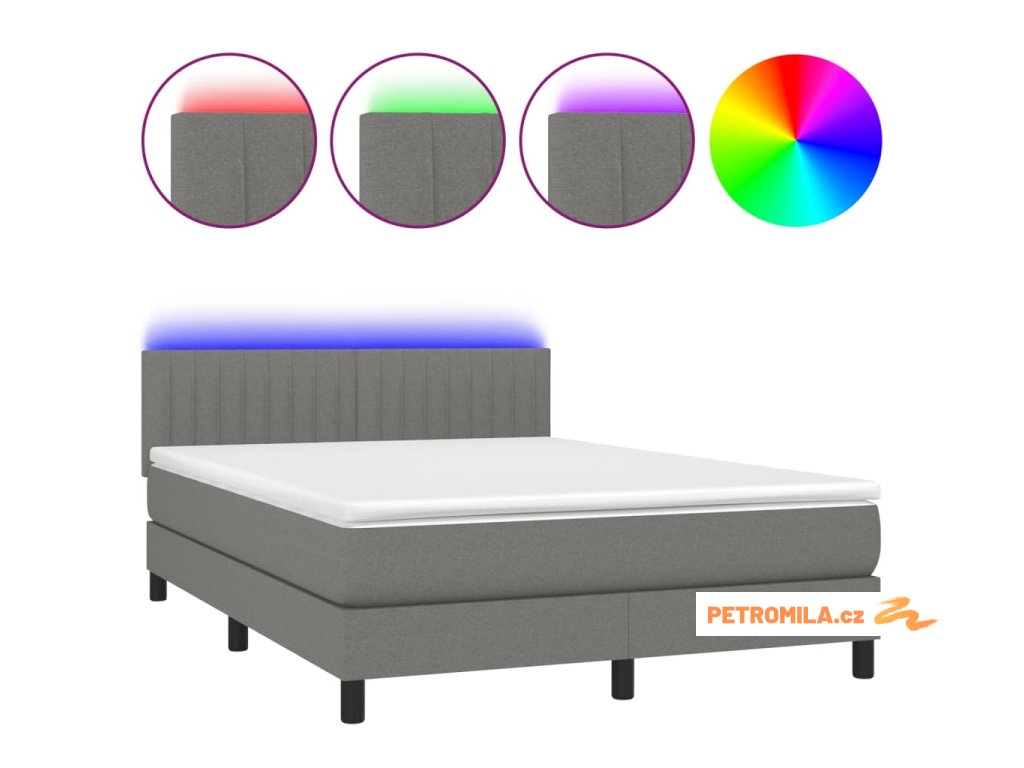 Box spring postel s matrací a LED tmavě šedá 140x190 cm textil