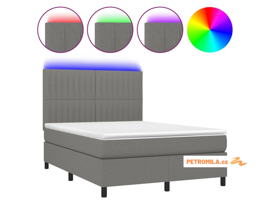 Box spring postel s matrací a LED tmavě šedá 140x190 cm textil