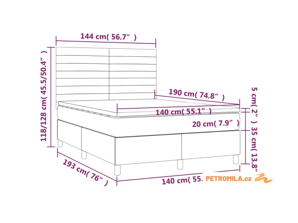- Rozměry: 140 x 190 x 20 cm (Š x D x V)