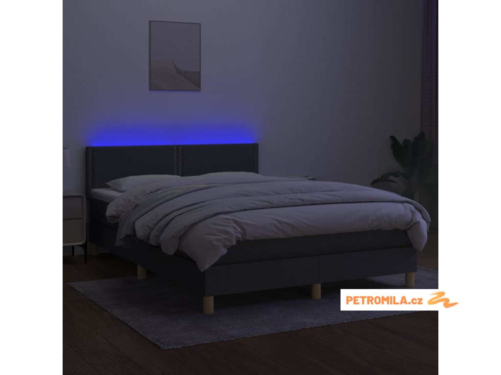 Box spring postel s matrací a LED tmavě šedá 140x190 cm textil