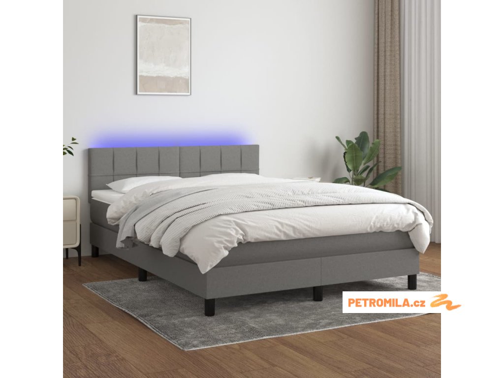 Box spring postel s matrací a LED tmavě šedá 140x190 cm textil