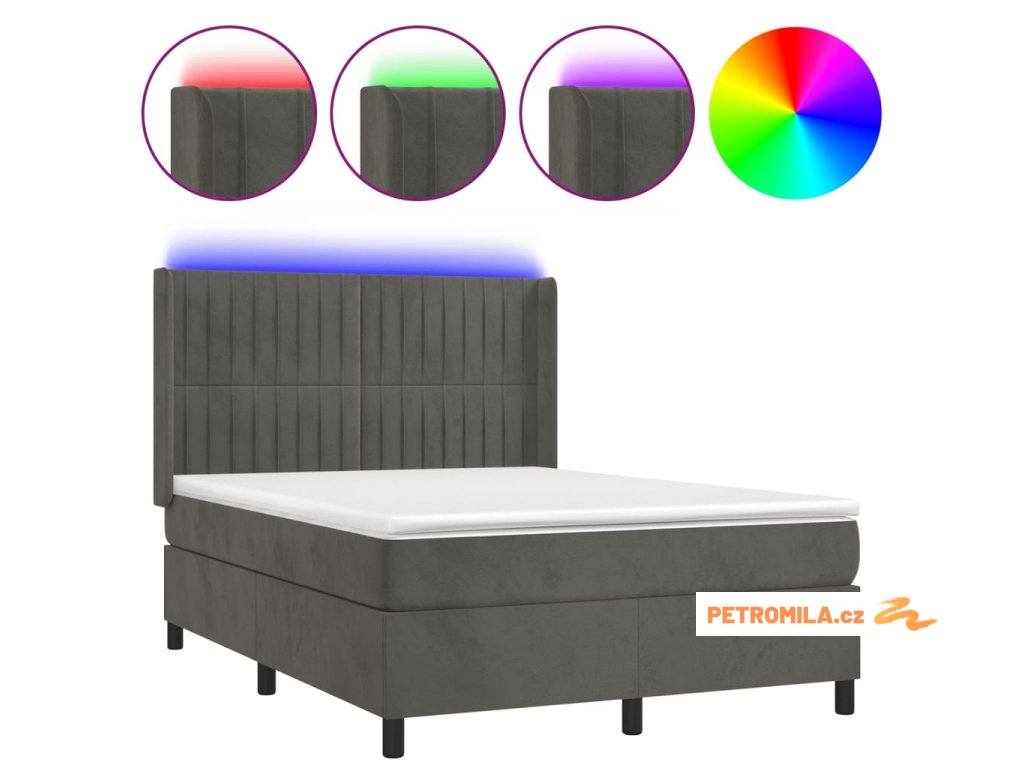 Box spring postel s matrací a LED tmavě šedá 140x200 cm samet