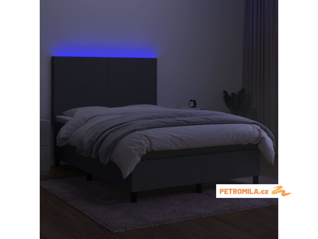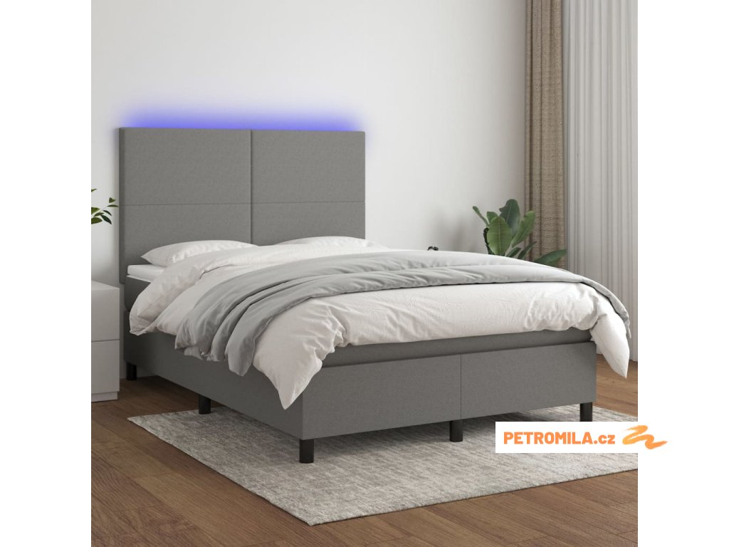 Box spring postel s matrací a LED tmavě šedá 140x200 cm textil