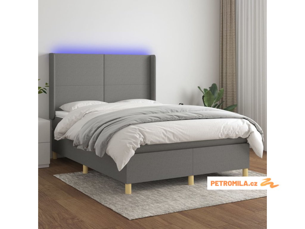 Box spring postel s matrací a LED tmavě šedá 140x200 cm textil