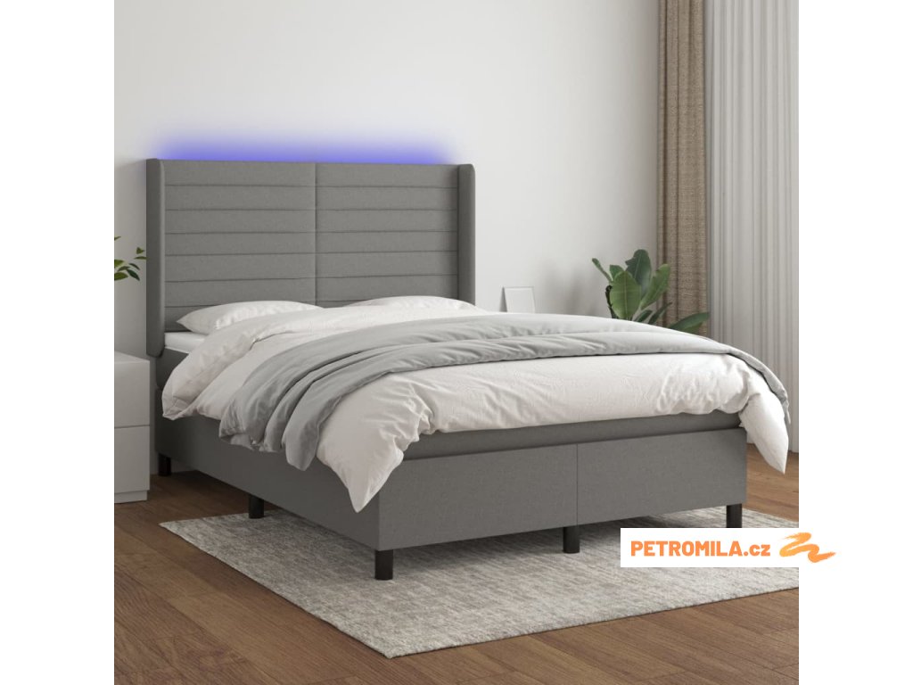 Box spring postel s matrací a LED tmavě šedá 140x200 cm textil
